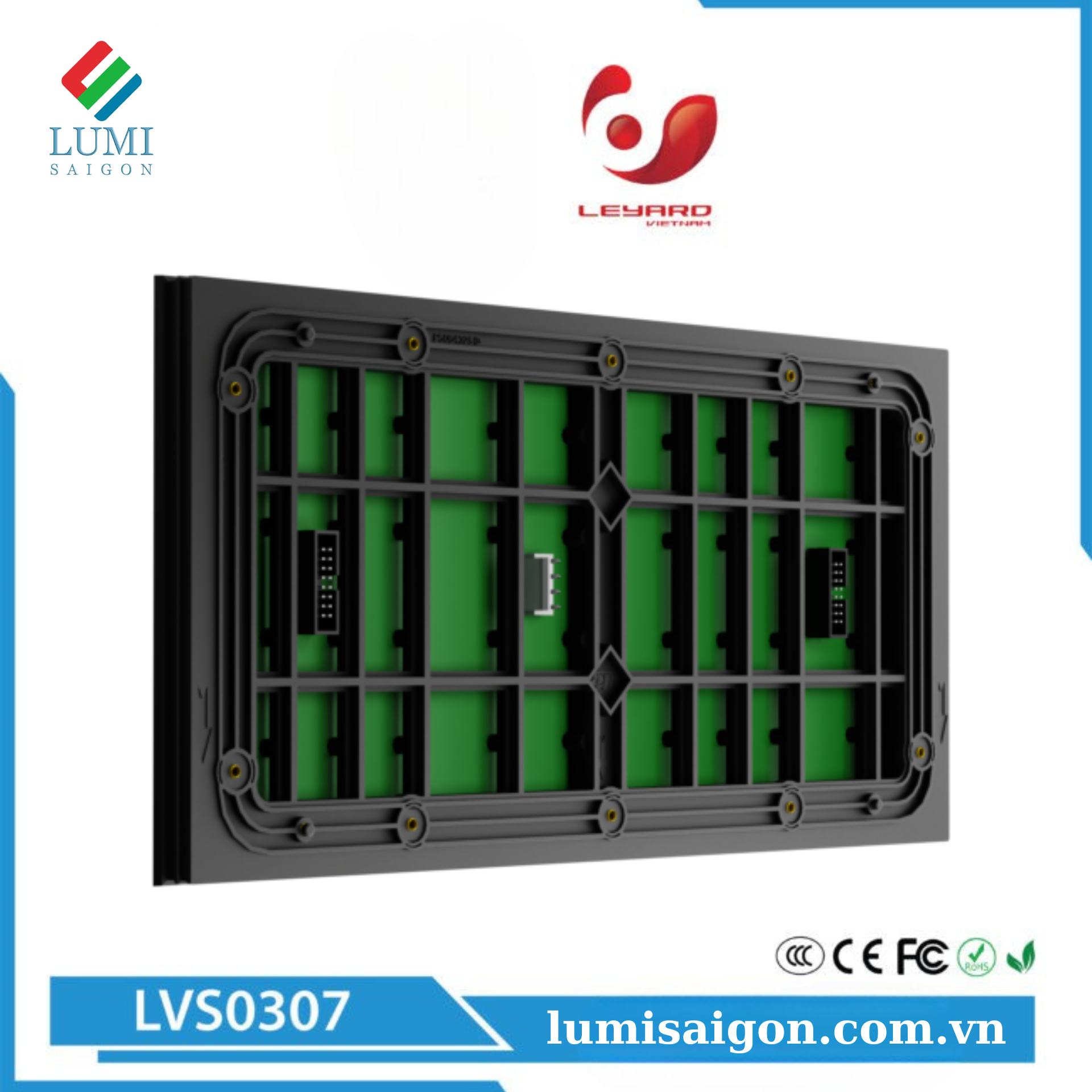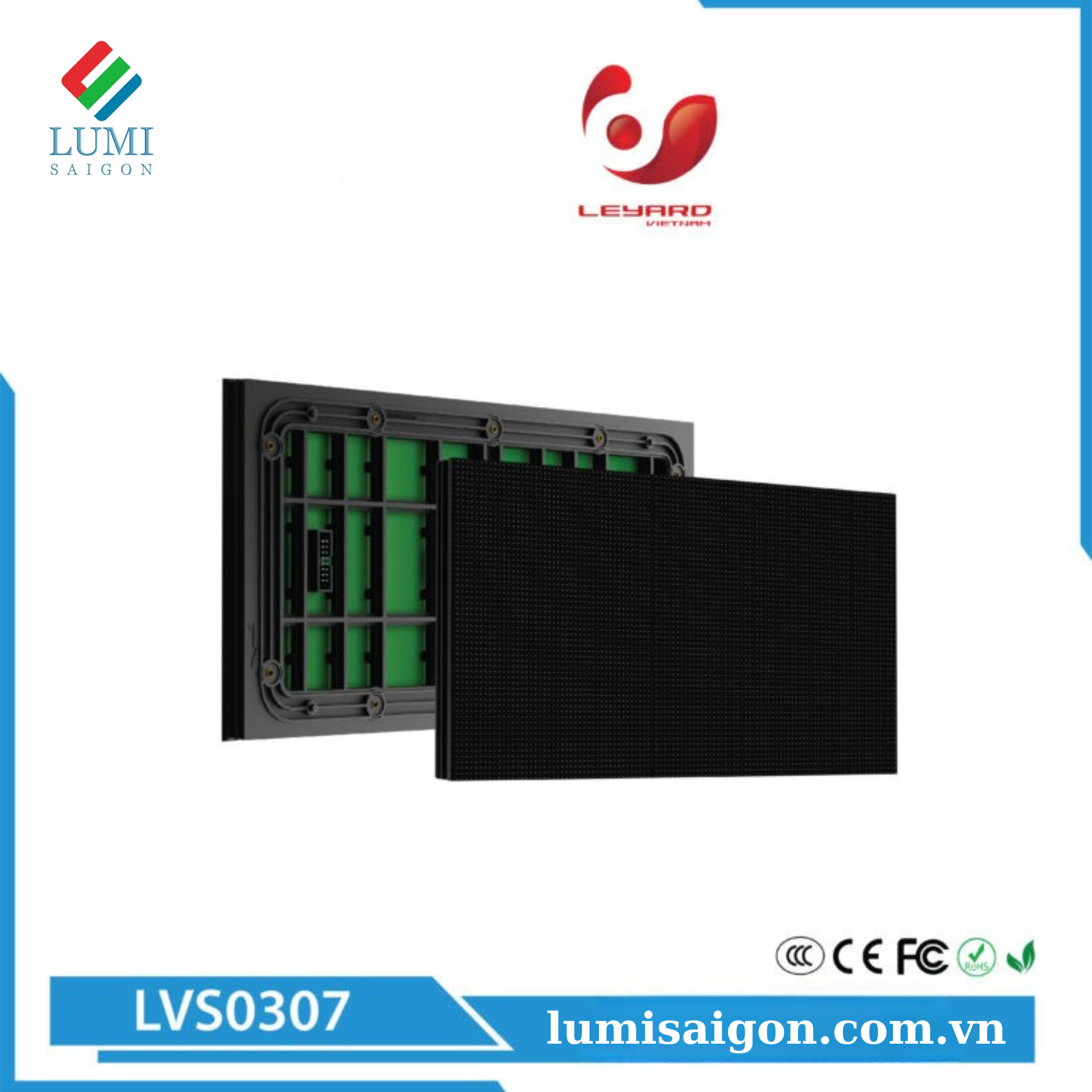 Module LED ngoài trời LVS0307  là sản phẩm hiển thị hiệu suất cao, tương thích với các hệ thống điều khiển phổ biến trên thị trường. Quy trình sản xuất và quản lý vật liệu được thực hiện theo các tiêu chuẩn khắt khe, đảm bảo độ tin cậy cao và tuổi thọ bền bỉ.