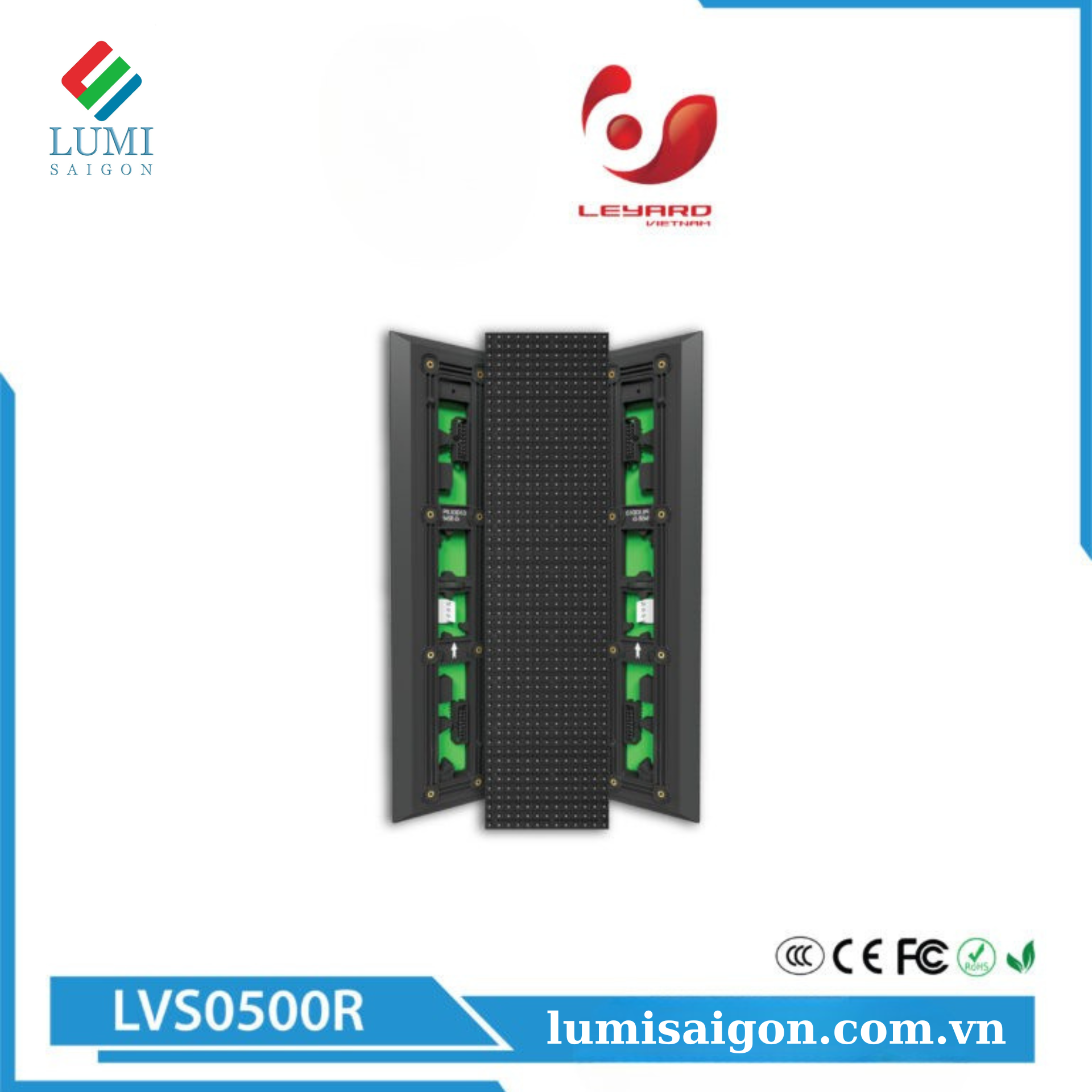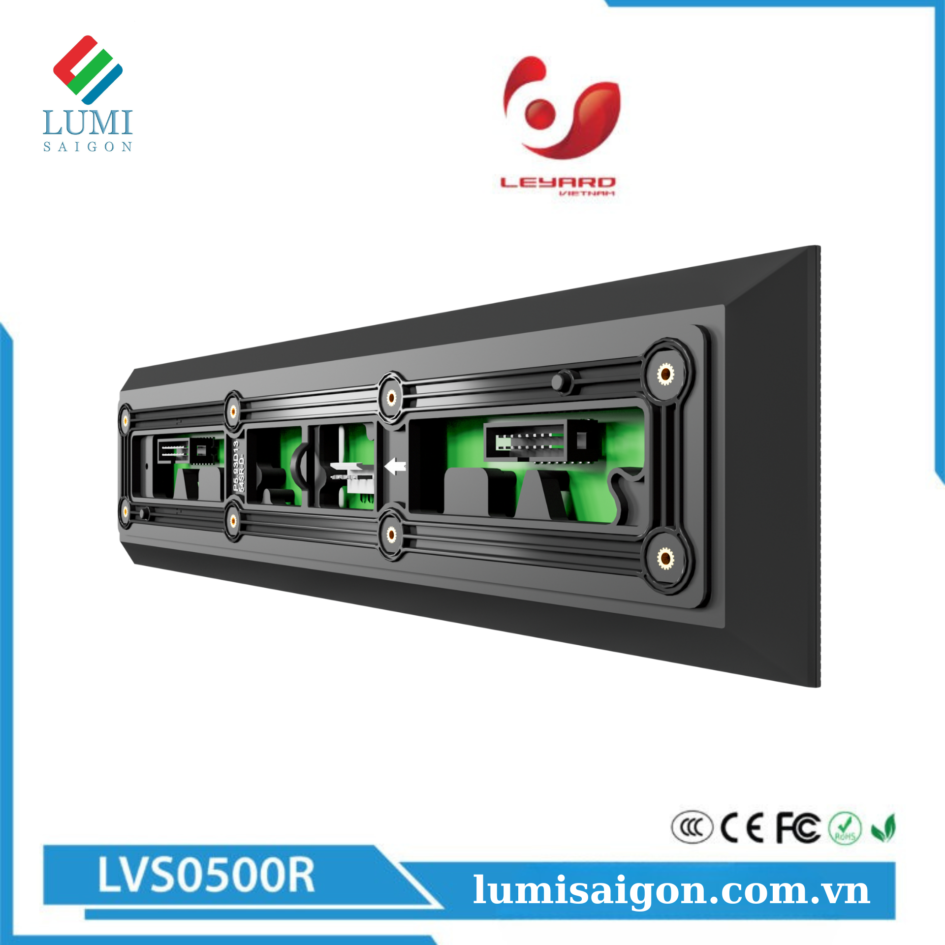 Module LED ngoài trời LVS0500R  là sản phẩm hiển thị hiệu suất cao, tương thích với các hệ thống điều khiển phổ biến trên thị trường. Quy trình sản xuất và quản lý vật liệu được thực hiện theo các tiêu chuẩn khắt khe, đảm bảo độ tin cậy cao và tuổi thọ bền bỉ.